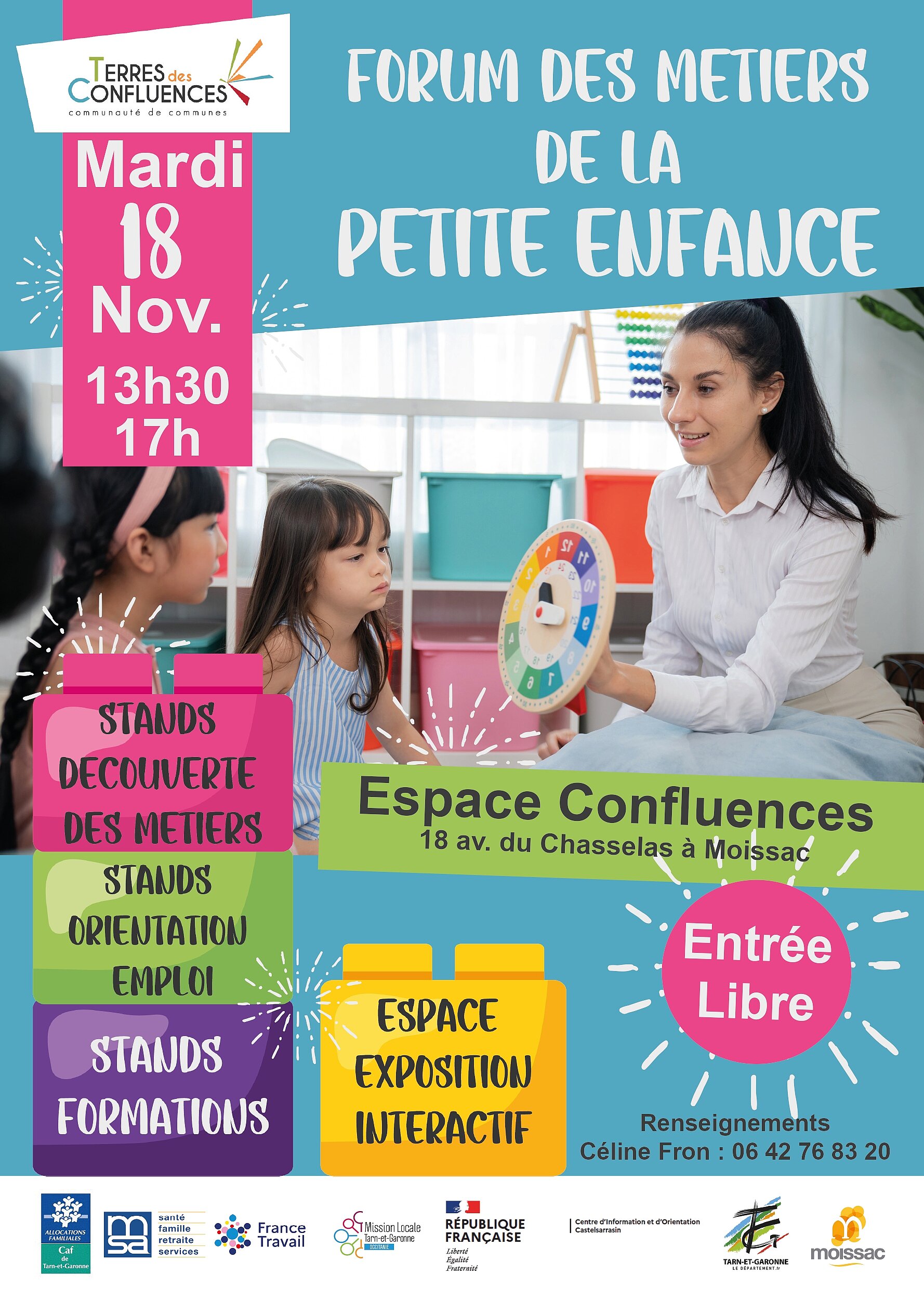 Le Forum des Métiers de la Petite Enfance arrive à Moissac le mardi 18 novembre 2025, de 13h30 à 17h, à l’Espace Confluences.