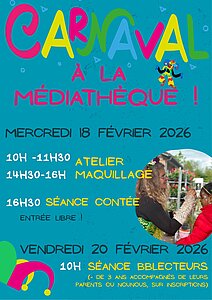 Mercredi 18 février, place à la fête avec un programme haut en couleur : maquillage, séance contée, atelier créatif… De quoi ravir petits et grands ! Entrée libre.