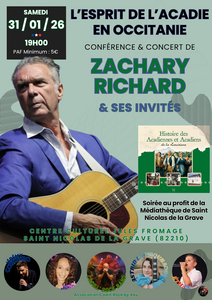 Une Conférence suivie d’un concert de Zachary Richard et ses invités : Cadill'Rock Band, Jeremy Cordeiro, Jennifer Abidh, Astrid la Troubadour, Ethan Martet