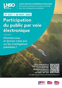 Première demande d’autorisation environnementale (DAE) déposée par l’Agence GPSO, maître d’ouvrage du projet de Ligne nouvelle du Sud-Ouest (LNSO). Cette étape permet de réaliser les investigations préalables en milieu sensible sur le tracé de la ligne nouvelle Bordeaux–Toulouse, nécessaires à la conception du projet avant la réalisation des travaux.