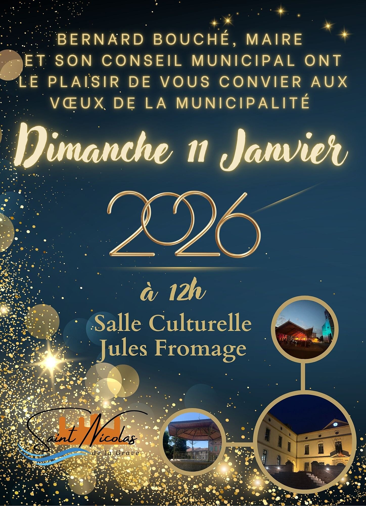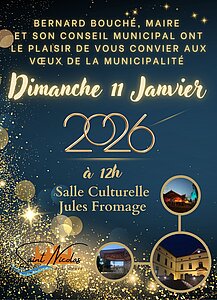 Monsieur le Maire et l’ensemble de l’équipe municipale sont heureux de vous convier à la cérémonie de présentation des vœux à l’occasion de la nouvelle année.