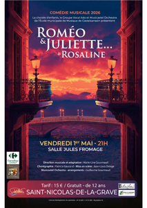 Plongez dans l’univers intemporel de Roméo & Juliette… + Rosaline, une comédie musicale revisitée et pleine d’émotions. Portée par la chorale d’enfants, le Groupe Vocal Ado et le Musical Orchestra de l’école municipale de musique, cette représentation promet un moment artistique riche et captivant.